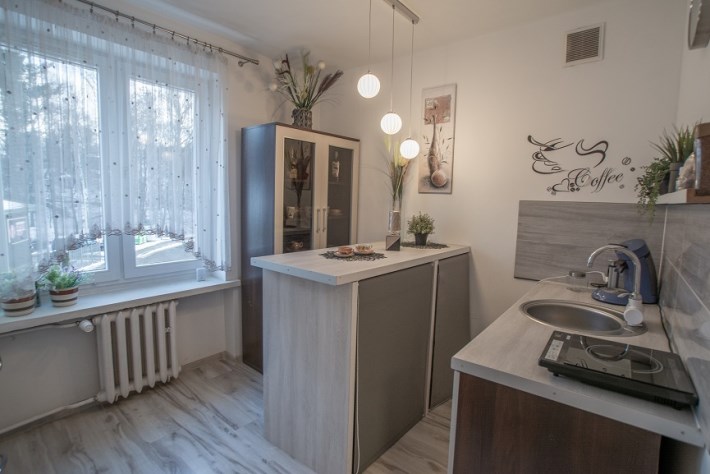 Niewielkim nakładem finansowym istnieje możliwość przearanżowania mieszkania poprzez zagospodarowanie we wnęcę pokoju aneksu kuchennego, a w miejscu kuchni drugiego pokoju. W cenie pozostaje całe umeblowanie widoczne na zdjęciach. Stan lokalu nie wymaga nakładów finansowych, można wejść i mieszkać.