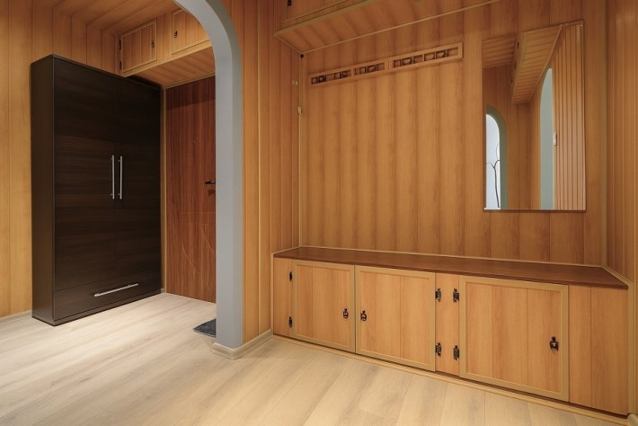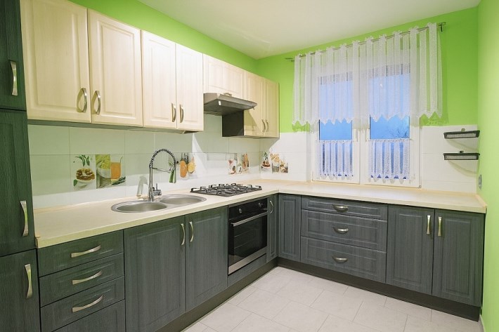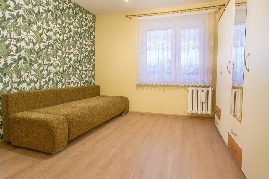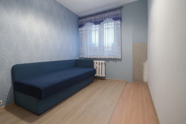 W pokojach na podłogach położone są panele, a na ścianach tapety.