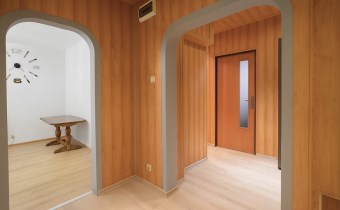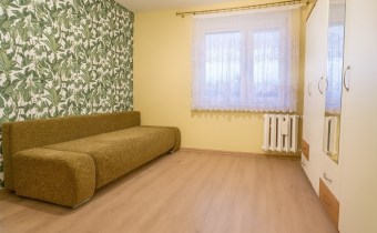 Wygodny układ pomieszczeń obejmuje: 3 ustawne pokoje, dużą kuchnię z oknem, przestronny przedpokój w kształcie litery L, łazienkę oraz WC.