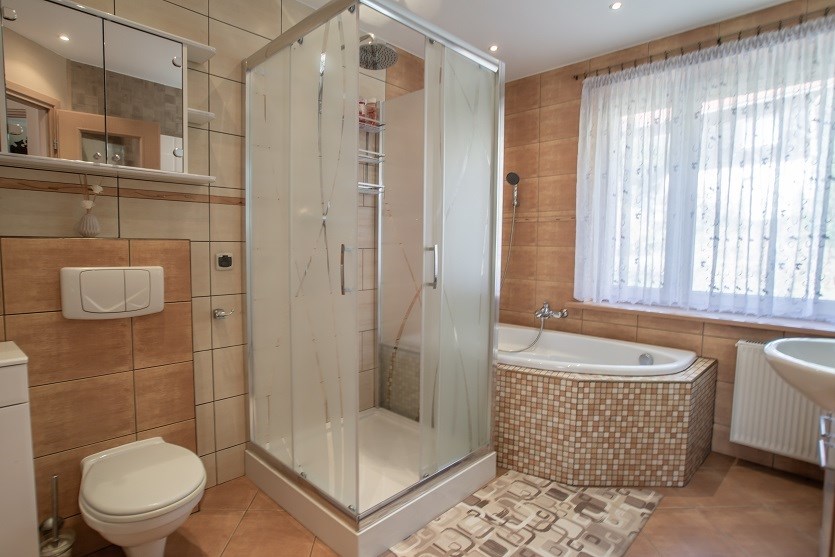• duża łazienka z wanną i prysznicem