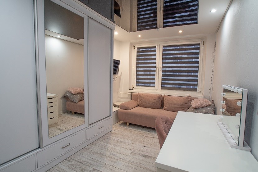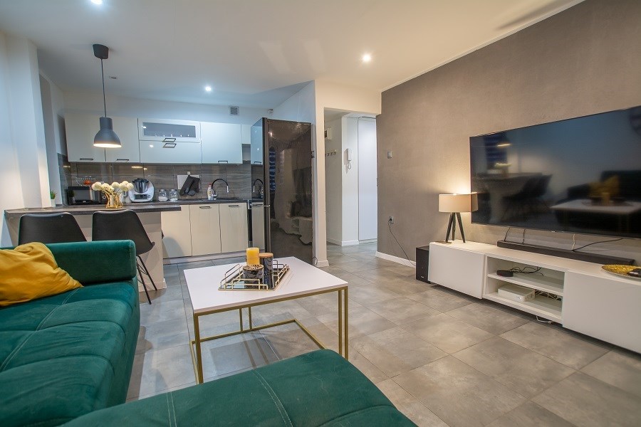 przytulna sypialnia, salon połączony z kuchnią, przedpokój, łazienka z WC.